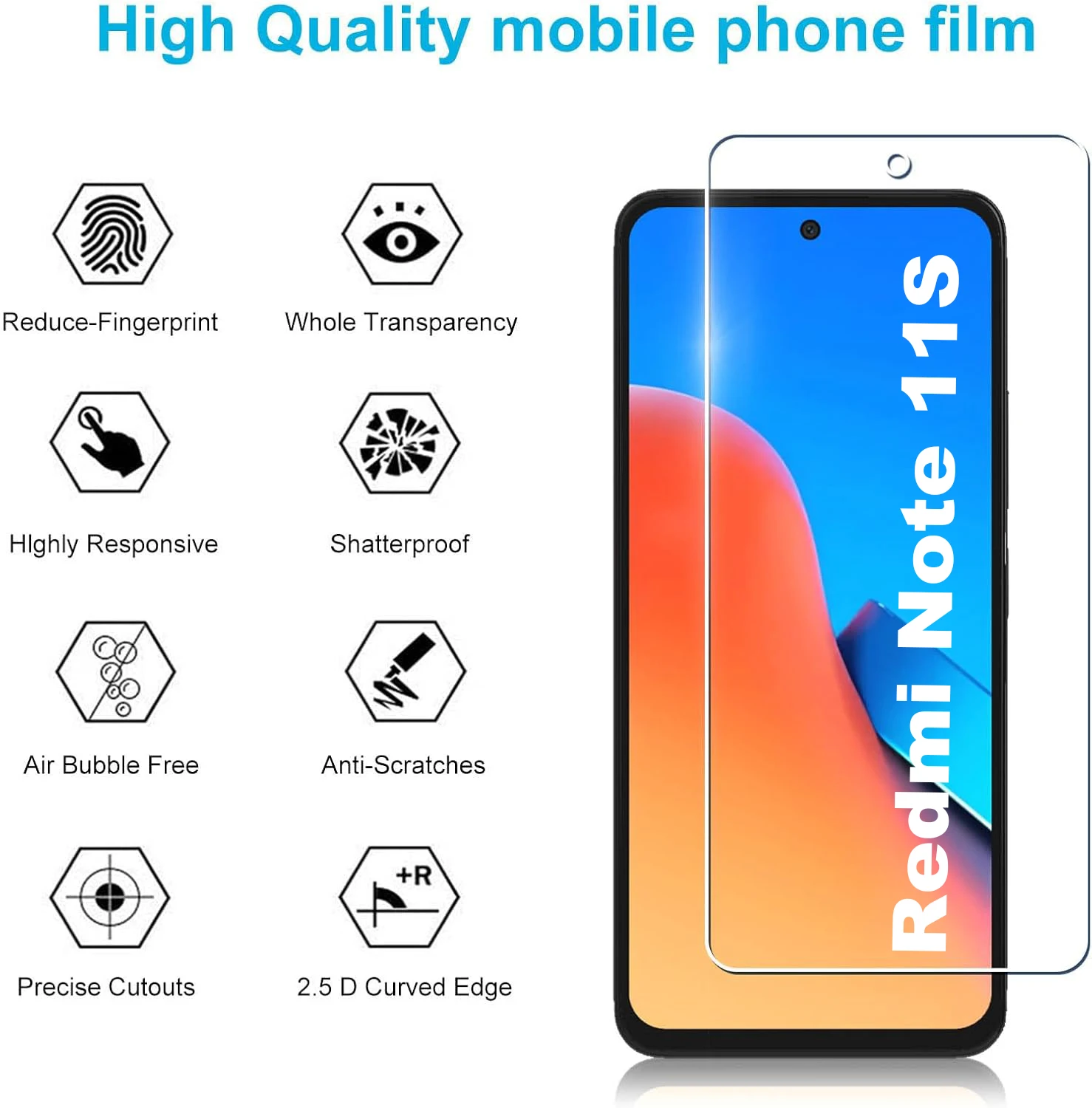 Para Xiaomi Redmi Note 11S/Note 11S 5G Protector de pantalla de vidrio templado película de vidrio