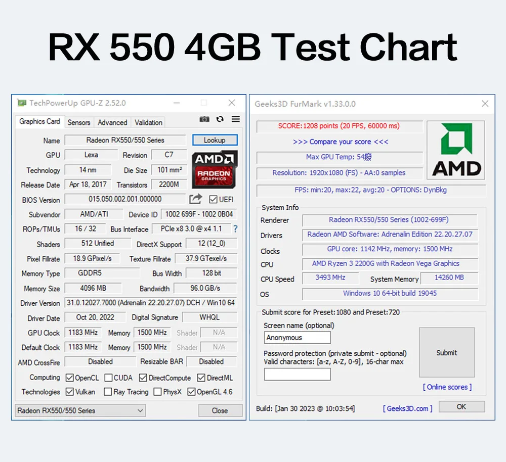 Gráfico de prueba RX 550 4GB