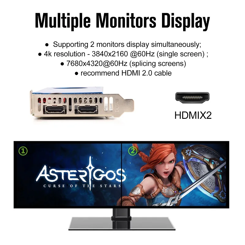 4.Se pueden admitir hasta 2 salidas de pantalla simultáneamente, HDMI2.0b admite 4k@60hz, DP1.4 admite 8k@60hz.