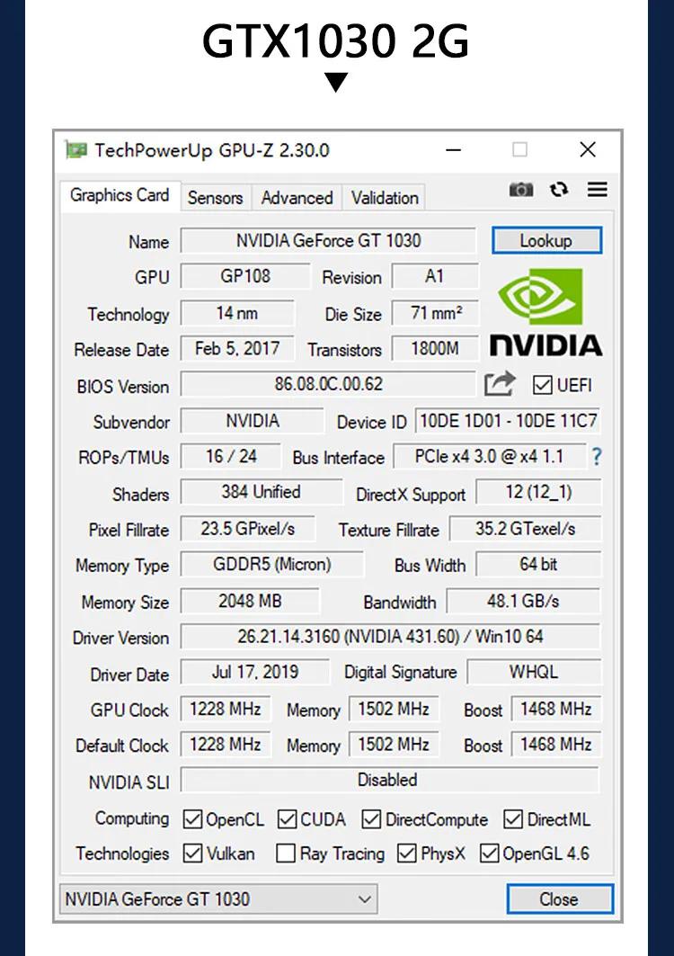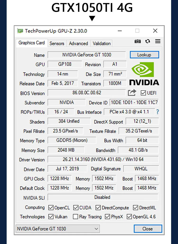 ----------------- GTX 1650 /GTX1050Ti/GTX1050/RX550/GT1030 Puerto HDMI + DP de perfil bajo--------------------