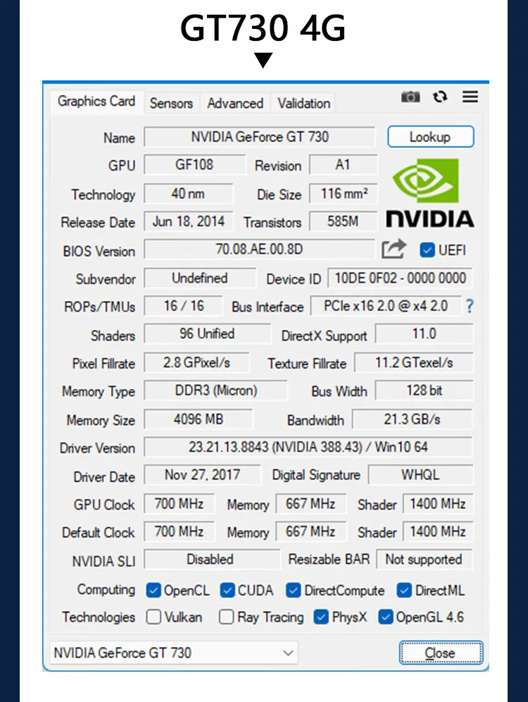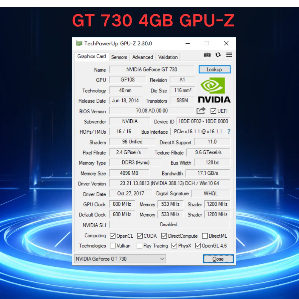 -----------------GT730 GDDR3 4G 2HDMI--------------------