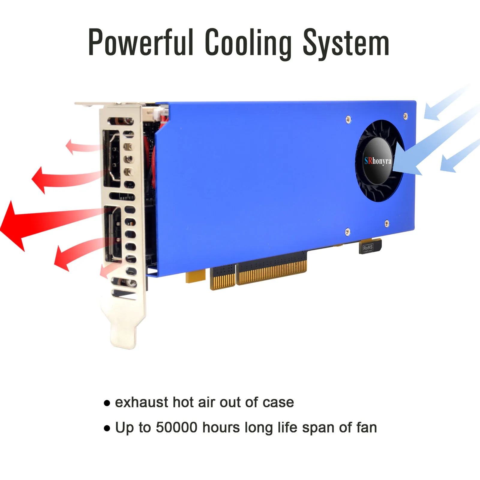4. Mejor sistema de disipación de calor: la tarjeta gráfica de perfil bajo SONGREY está equipada con un ventilador turbo, cuyas aspas del ventilador pueden dirigir el aire fuera del conducto interno de la tarjeta gráfica, creando un flujo de aire de alta velocidad que puede transportar el calor rápidamente.Construyendo un potente sistema de disipación de calor.