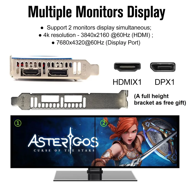 1.Potente Compatibilidad: con un factor de forma más pequeño, es más probable que las tarjetas gráficas de perfil bajo sean compatibles con una gama más amplia de sistemas, incluso aquellos con limitaciones de espacio.
